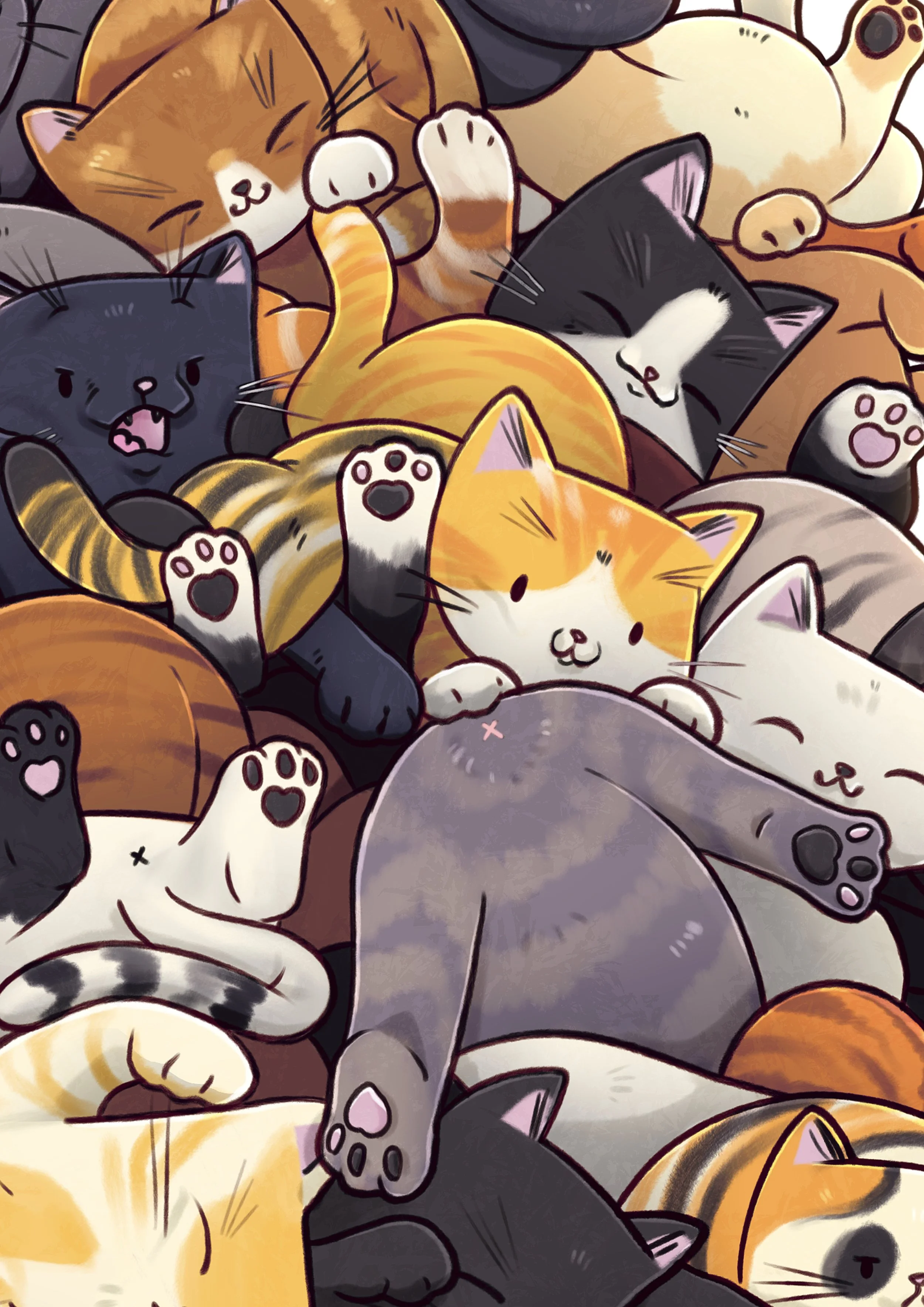 This A4 cat art print captures peak multi cat household energy and turns it into bold, playful wall decor for certified cat moms, cat dads, and proud crazy cat lady homes.